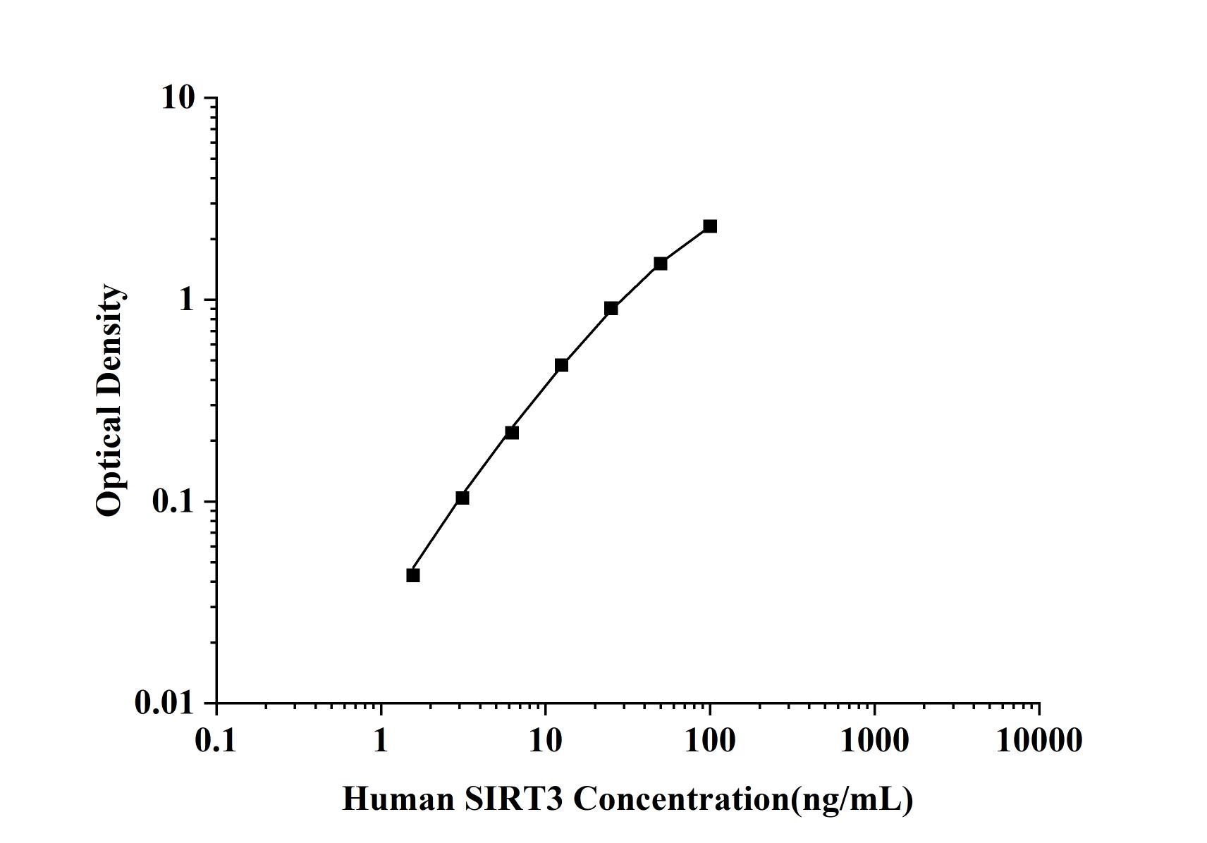 | Test principle | This ELISA kit uses the Sandwich-ELISA principle. The micro ELISA plate provided in this kit has been pre-coated with an antibody specific to SIRT3. Standards or samples are added to the micro ELISA plate wells and combined with the specific antibody. Then a biotinylated detection antibody specific for SIRT3 and Avidin-Horseradish Peroxidase (HRP) conjugate are added successively to each micro plate well and incubated. Free components are washed away. The substrate solution is added to each well. Only those wells that contain SIRT3, biotinylated detection antibody and Avidin-HRP conjugate will appear blue in color. The enzyme-substrate reaction is terminated by the addition of stop solution and the color turns yellow. The optical density (OD) is measured spectrophotometrically at a wavelength of 450 nm ± 2 nm. The OD value is proportional to the concentration of SIRT3. You can calculate the concentration of SIRT3 in the samples by comparing the OD of the samples to the standard curve. | ||