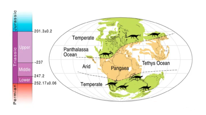 With the beginning of the Triassic period, due to the lack of vegetation, the entire Earth became dry, hot, and low in oxygen. There was even a lack of life near the equator, which was called the "death zone" [4].