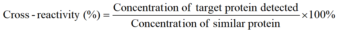 Specificity is evaluated by testing the kit’s ability to detect the target protein without cross-reacting with similar proteins. The cross-reactivity rate is calculated as follows: