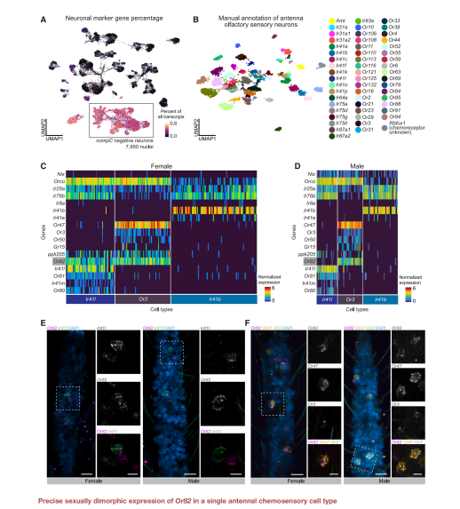 •Discovered a specific cell type (ppk317+ cells) in the antennae of male mosquitoes, which may be related to gender-specific behavioral differences.