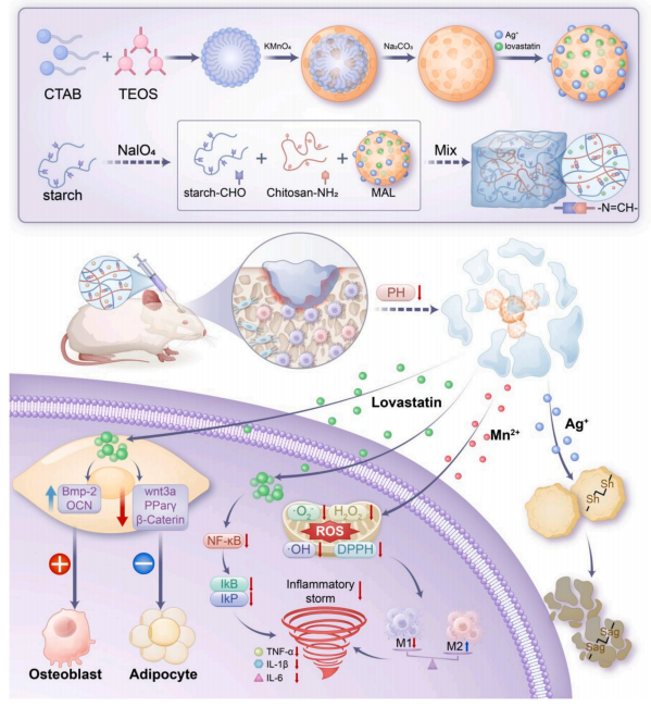 Infectious bone defect (IBD) is already a "tough nut to crack" in orthopedics and oral and maxillofacial surgery—bacterial biofilms are stubbornly drug-resistant, local inflammation persists, and bone regeneration is severely delayed. What's more tricky is that an increasing number of patients are complicated with hyperlipidemia: their immunity is impaired, stem cells "differentiate abnormally", reactive oxygen species (ROS) are overproduced, and bone marrow mesenchymal stem cells (BMSCs) do not differentiate towards osteogenesis but instead transform into adipocytes in large quantities. Under the triple blow of inflammation-oxidative stress-lipid metabolism disorder, the traditional "debridement + antibiotics" scheme is greatly compromised.