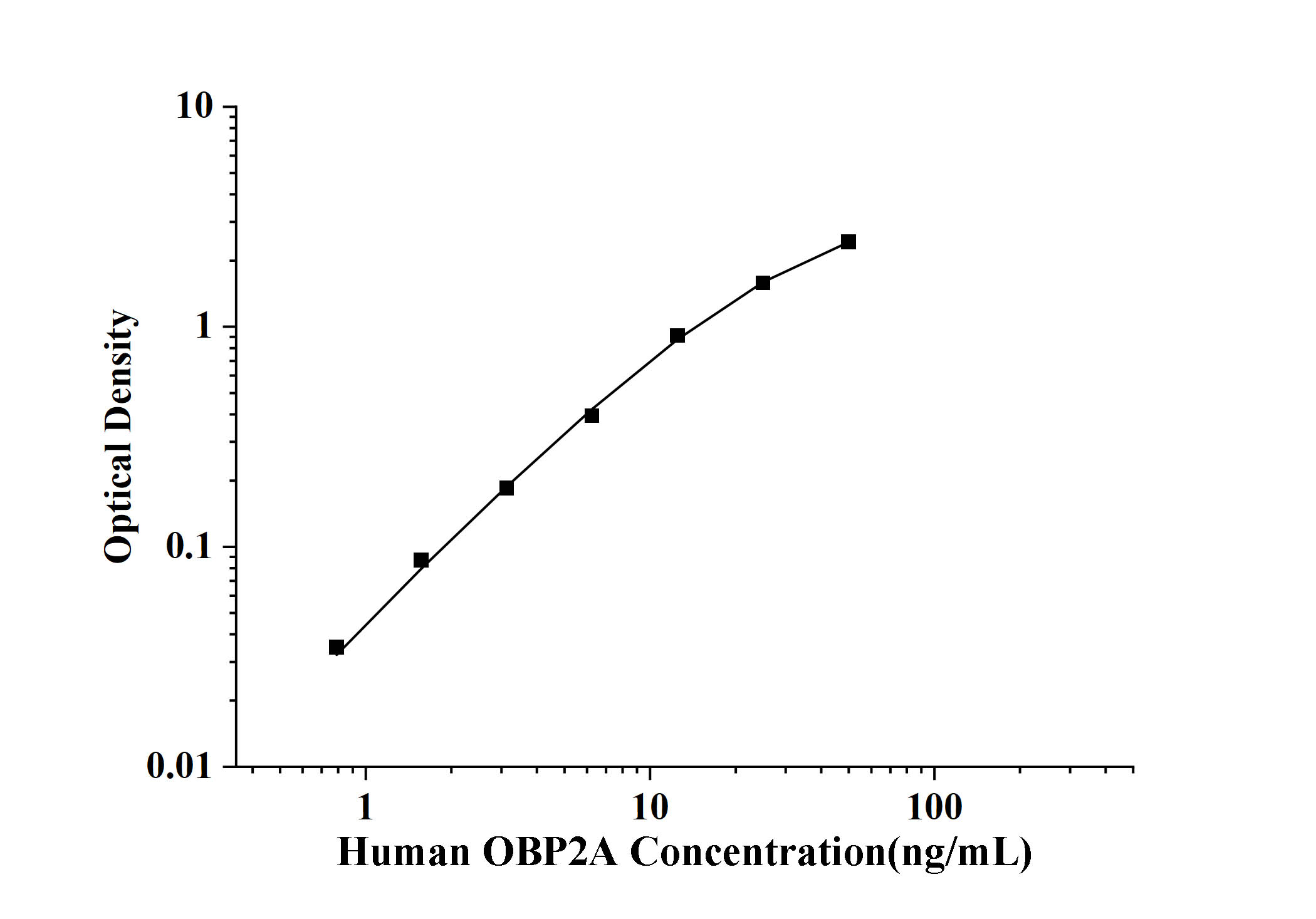 | Test principle | This ELISA kit uses the Sandwich-ELISA principle. The micro ELISA plate provided in this kit has been pre-coated with an antibody specific to Human OBP2A. Standards or samples are added to the micro ELISA plate wells and combined with the specific antibody. Then a biotinylated detection antibody specific for Human OBP2A and Avidin-Horseradish Peroxidase (HRP) conjugate are added successively to each micro plate well and incubated. Free components are washed away. The substrate solution is added to each well. Only those wells that contain Human OBP2A, biotinylated detection antibody and Avidin-HRP conjugate will appear blue in color. The enzyme-substrate reaction is terminated by the addition of stop solution and the color turns yellow. The optical density (OD) is measured spectrophotometrically at a wavelength of 450 nm ± 2 nm. The OD value is proportional to the concentration of Human OBP2A. You can calculate the concentration of Human OBP2A in the samples by comparing the OD of the samples to the standard curve. | ||