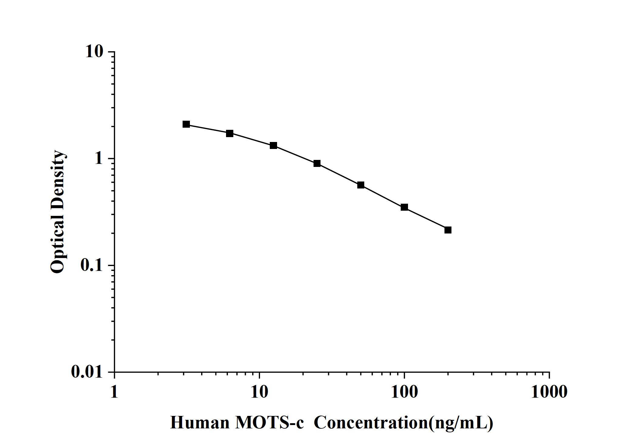 As the OD values of the standard curve may vary according to the conditions of the actual assay performance (e.g. operator, pipetting technique, washing technique or temperature effects), the operator should establish a standard curve for each test. Typical standard curve and data is provided below for reference only.