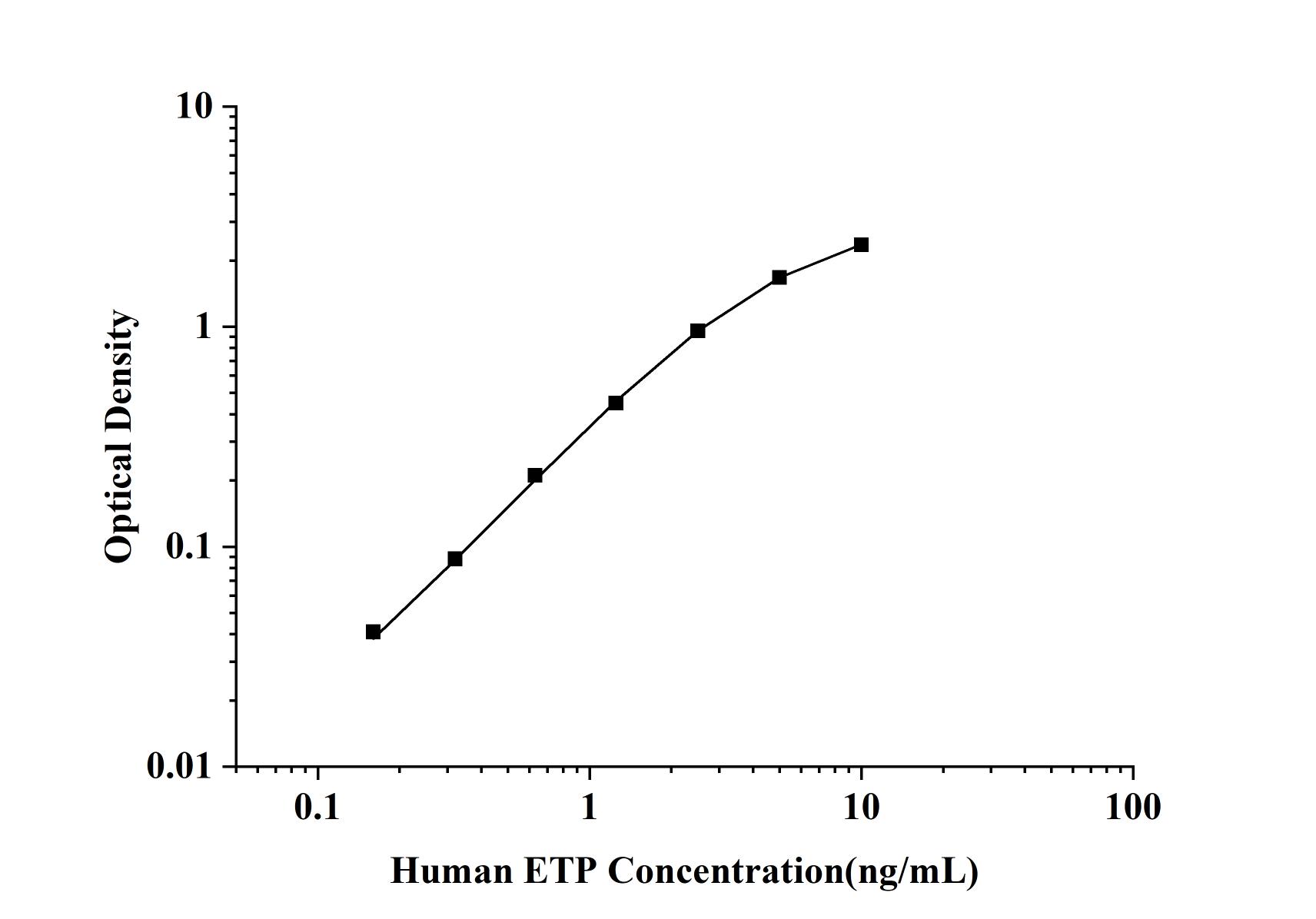 | Test principle | This ELISA kit uses the Sandwich-ELISA principle. The micro ELISA plate provided in this kit has been pre-coated with an antibody specific to ETP. Standards or samples are added to the micro ELISA plate wells and combined with the specific antibody. Then a biotinylated detection antibody specific for ETP and Avidin-Horseradish Peroxidase (HRP) conjugate are added successively to each micro plate well and incubated. Free components are washed away. The substrate solution is added to each well. Only those wells that contain ETP, biotinylated detection antibody and Avidin-HRP conjugate will appear blue in color. The enzyme-substrate reaction is terminated by the addition of stop solution and the color turns yellow. The optical density (OD) is measured spectrophotometrically at a wavelength of 450 nm ± 2 nm. The OD value is proportional to the concentration of ETP. You can calculate the concentration of ETP in the samples by comparing the OD of the samples to the standard curve. | ||