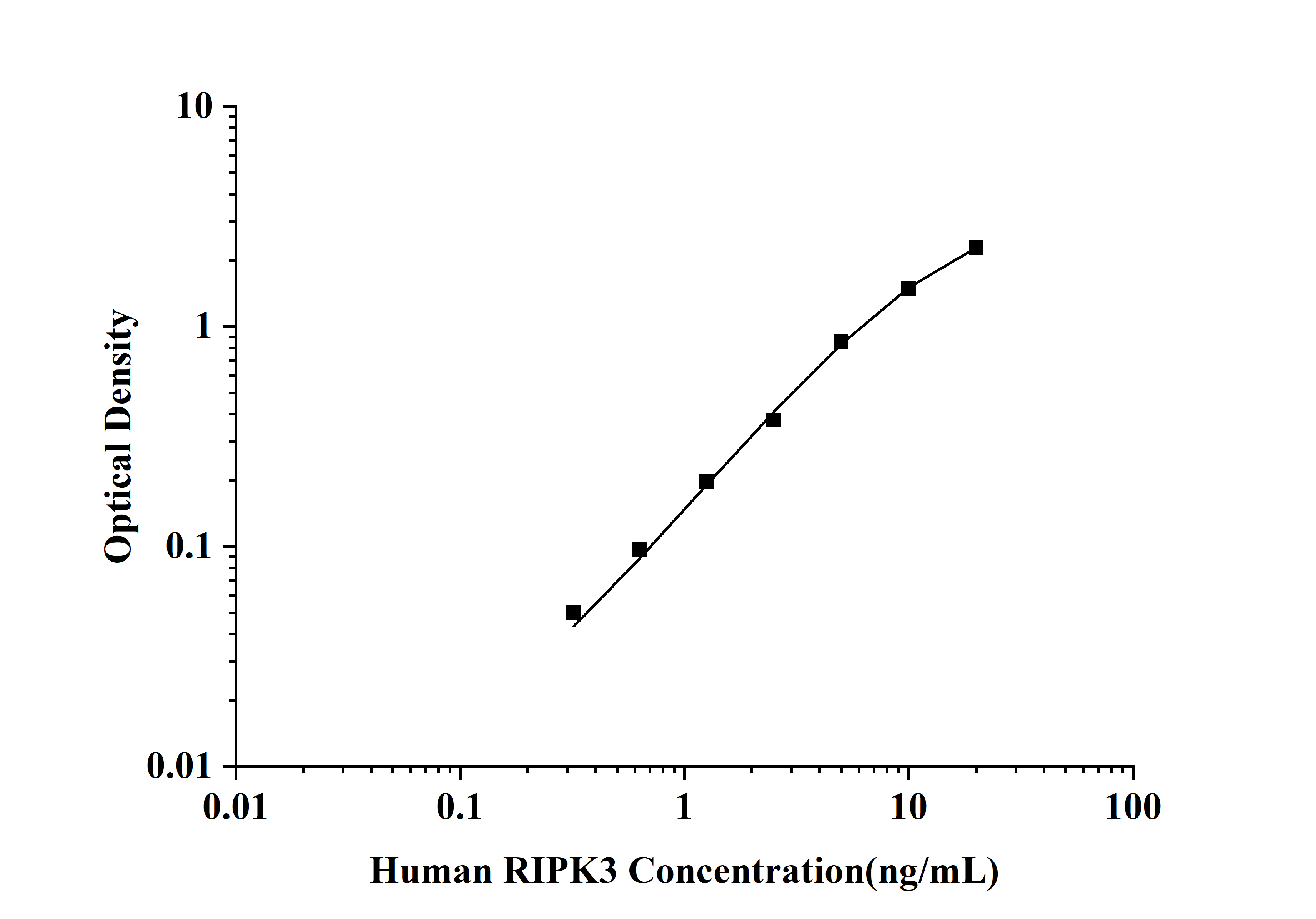 | Test principle | This ELISA kit uses the Sandwich-ELISA principle. The micro ELISA plate provided in this kit has been pre-coated with an antibody specific to RIPK3. Standards or samples are added to the micro ELISA plate wells and combined with the specific antibody. Then a biotinylated detection antibody specific for RIPK3 and Avidin-Horseradish Peroxidase (HRP) conjugate are added successively to each micro plate well and incubated. Free components are washed away. The substrate solution is added to each well. Only those wells that contain RIPK3, biotinylated detection antibody and Avidin-HRP conjugate will appear blue in color. The enzyme-substrate reaction is terminated by the addition of stop solution and the color turns yellow. The optical density (OD) is measured spectrophotometrically at a wavelength of 450 nm ± 2 nm. The OD value is proportional to the concentration of RIPK3. You can calculate the concentration of RIPK3 in the samples by comparing the OD of the samples to the standard curve. | ||
