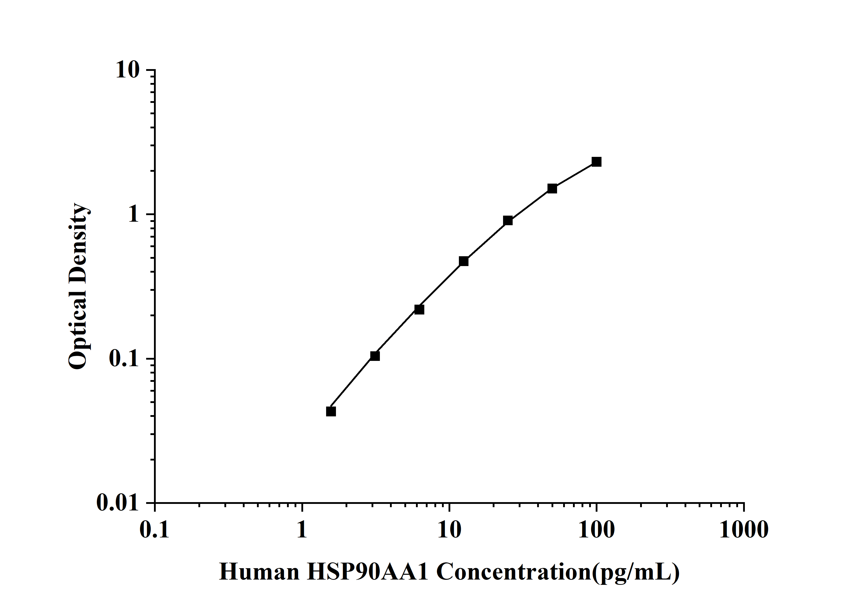 | Test principle | This ELISA kit uses the Sandwich-ELISA principle. The micro ELISA plate provided in this kit has been pre-coated with an antibody specific to HSP90AA1. Standards or samples are added to the micro ELISA plate wells and combined with the specific antibody. Then a biotinylated detection antibody specific for HSP90AA1 and Avidin-Horseradish Peroxidase (HRP) conjugate are added successively to each micro plate well and incubated. Free components are washed away. The substrate solution is added to each well. Only those wells that contain HSP90AA1, biotinylated detection antibody and Avidin-HRP conjugate will appear blue in color. The enzyme-substrate reaction is terminated by the addition of stop solution and the color turns yellow. The optical density (OD) is measured spectrophotometrically at a wavelength of 450 nm ± 2 nm. The OD value is proportional to the concentration of HSP90AA1. You can calculate the concentration of HSP90AA1 in the samples by comparing the OD of the samples to the standard curve. | ||