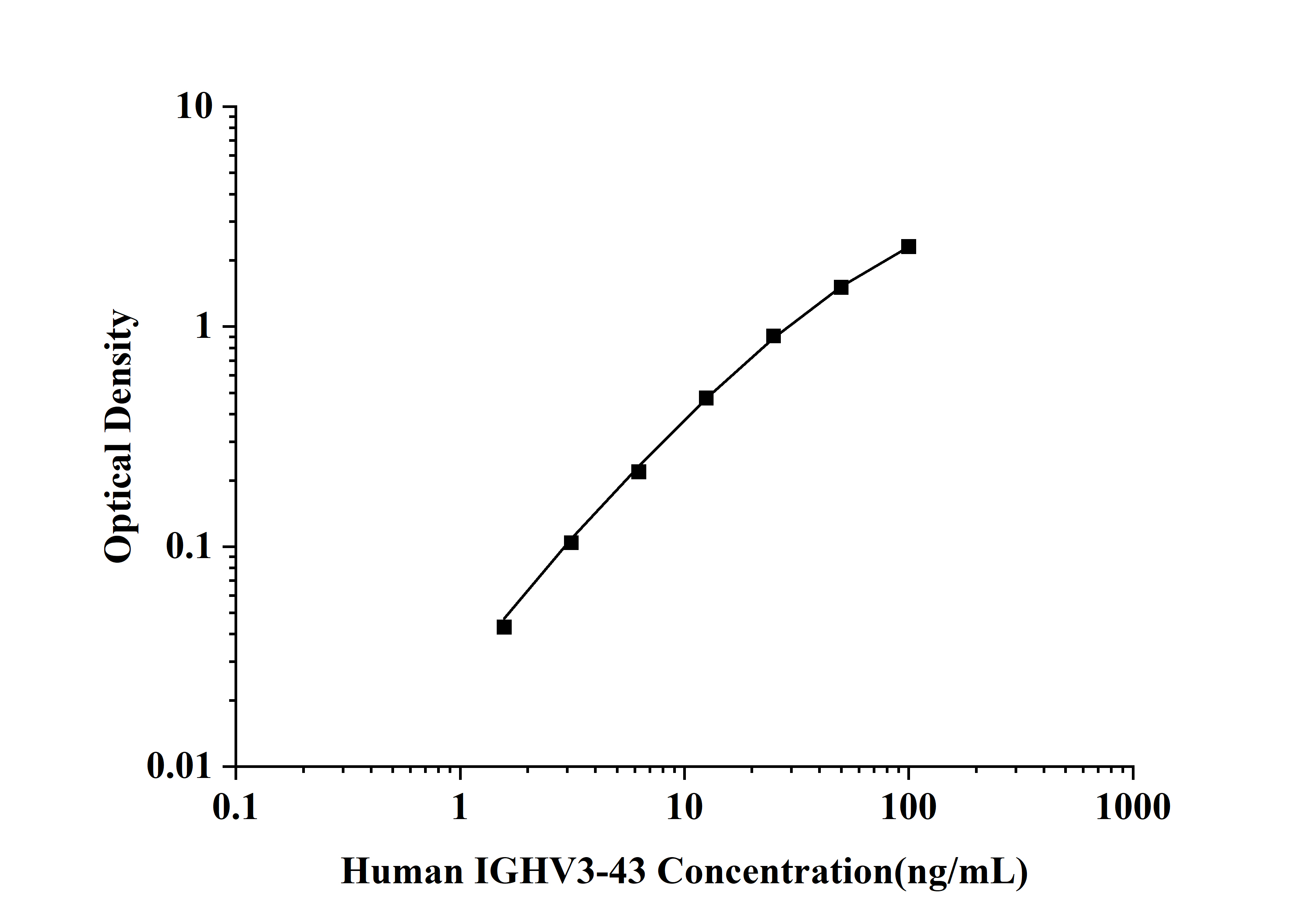 | Test principle | This ELISA kit uses the Sandwich-ELISA principle. The micro ELISA plate provided in this kit has been pre-coated with an antibody specific to Human IGHV3-43. Standards or samples are added to the micro ELISA plate wells and combined with the specific antibody. Then a biotinylated detection antibody specific for Human IGHV3-43 and Avidin-Horseradish Peroxidase (HRP) conjugate are added successively to each micro plate well and incubated. Free components are washed away. The substrate solution is added to each well. Only those wells that contain Human IGHV3-43, biotinylated detection antibody and Avidin-HRP conjugate will appear blue in color. The enzyme-substrate reaction is terminated by the addition of stop solution and the color turns yellow. The optical density (OD) is measured spectrophotometrically at a wavelength of 450 nm ± 2 nm. The OD value is proportional to the concentration of Human IGHV3-43. You can calculate the concentration of Human IGHV3-43 in the samples by comparing the OD of the samples to the standard curve. | ||