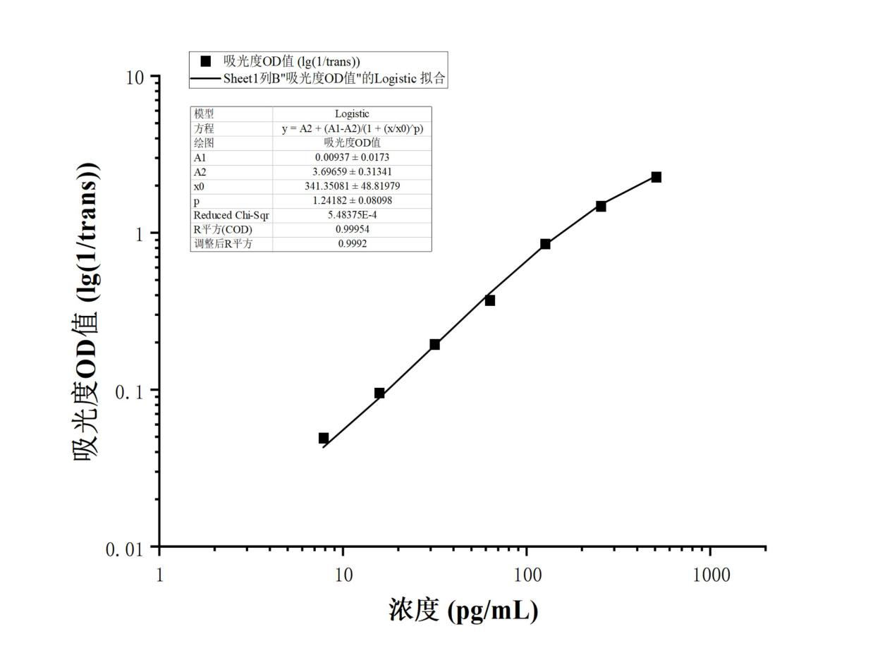 The OD value range and correlation coefficient of the kit are evaluated using the standard solutions.