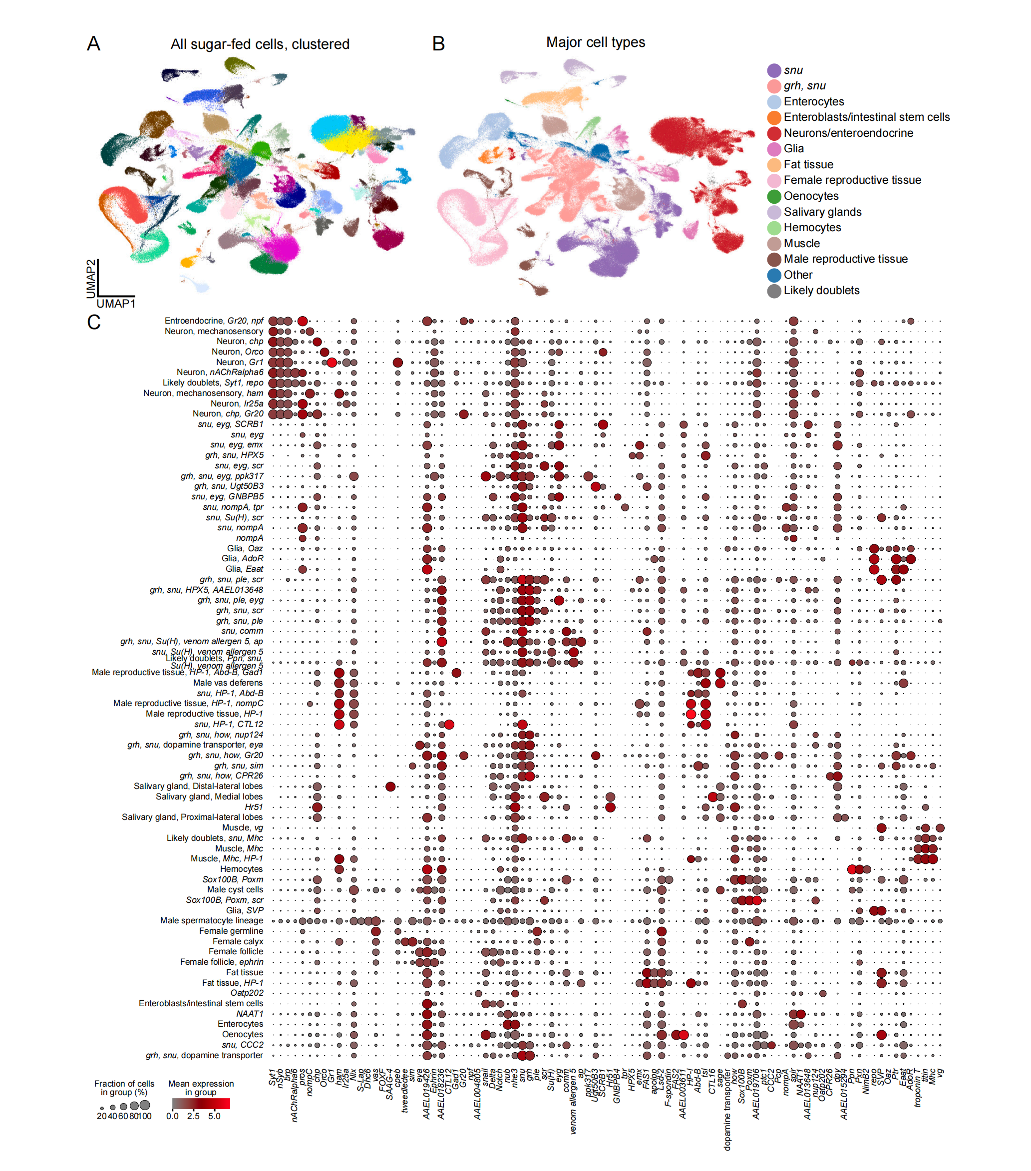Goldman, O. V., DeFoe, A. E., Qi, Y., et al. (2025). A single-nucleus transcriptomic atlas of the adult Aedes aegypti mosquito. Cell, 188(1), 1–24. DOI: 10.1016/j.cell.2025.10.008