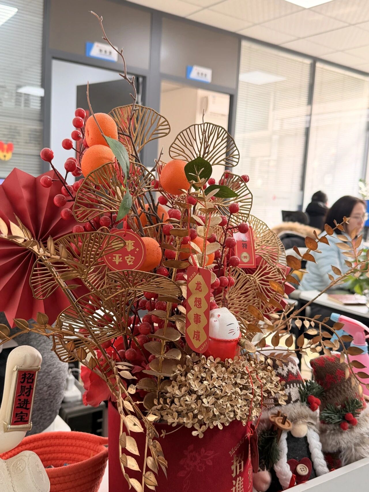 Stepping into the company, the New Year's atmosphere is immediately palpable, No need for elaborate decorations; the simple decor conveys heartfelt sentiment—hanging "Fu" characters, adorned with New Year ornaments, and bathed in warm lighting, creating an exceptionally cozy office space. This isn't just an afternoon tea setup; it's our hope for the Year of the Horse, a gentle greeting to every colleague who has walked alongside us. Every snapshot is brimming with New Year's ritual, capturing beautiful moments at the year's end.